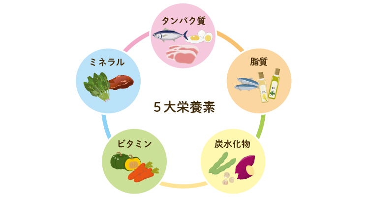 フードにおやつ、口にする食べ物はすべて、愛犬の栄養の源です。食事から摂れる栄養素のうち、タンパク質・脂質・炭水化物・ビタミン・ミネラルは、5大栄養素と呼ばれています。