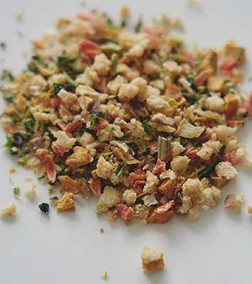 ふりかけ1粒は4mm以下の極小粒サイズ。どんな犬種・年齢の子でも食べやすく消化吸収の負担がかからない大きさに仕上げました。
