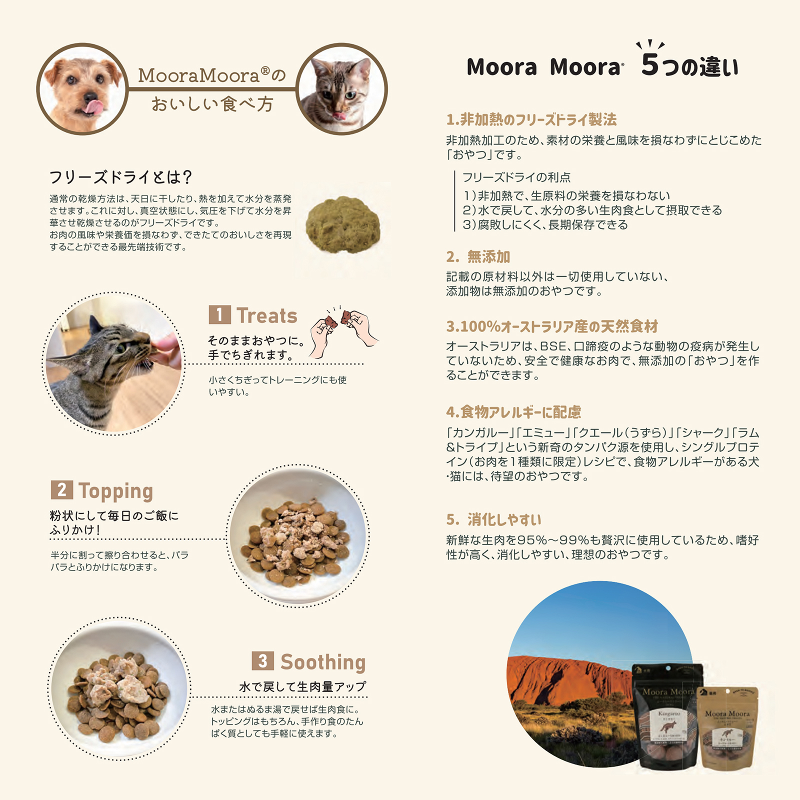 - カンガルー生肉95%、レッドビート2.5%、グリーンアップル2.5%
