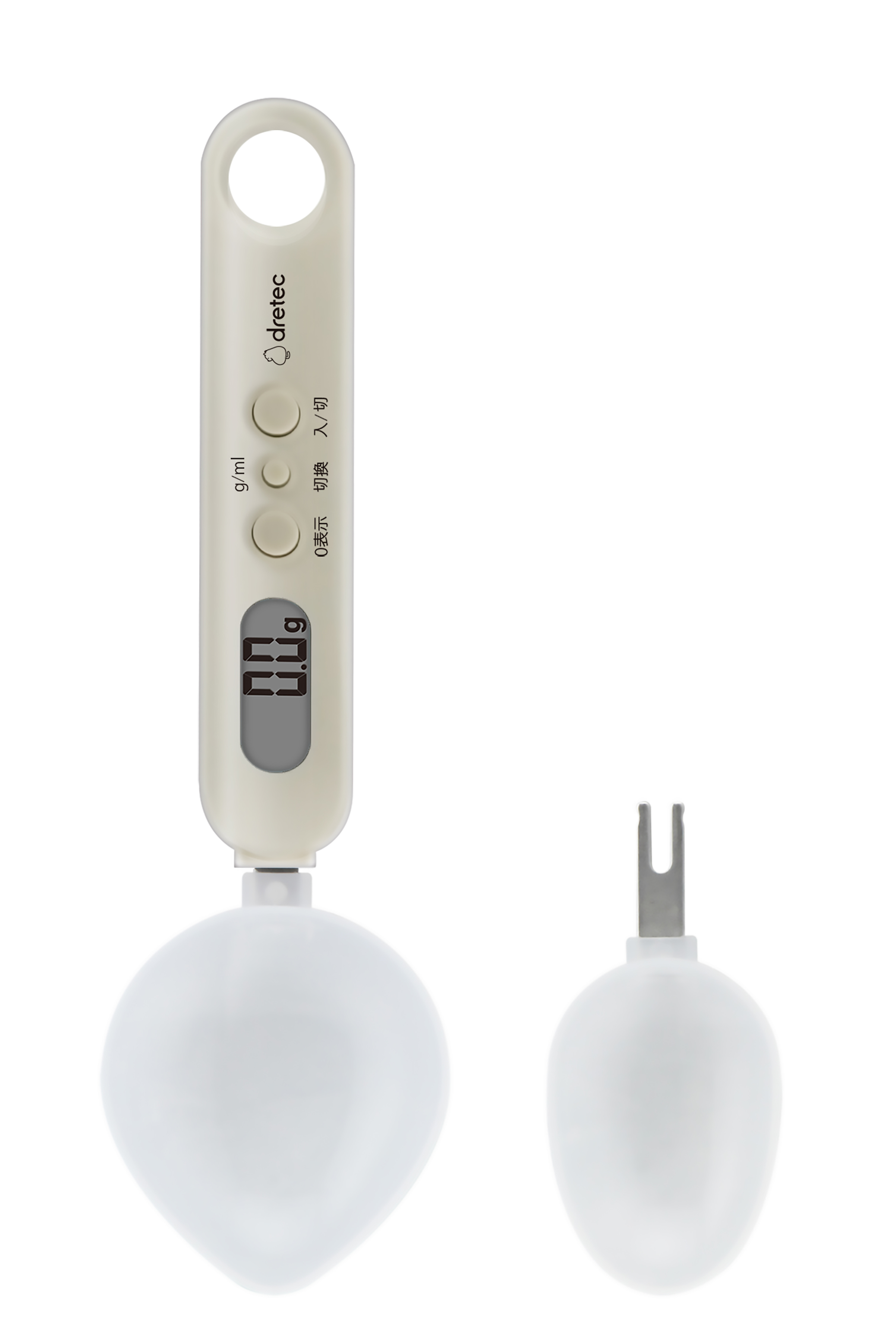 - スプーン小1杯で約10~20g、スプーン大1杯で約20~30gを計量できます。スプーンは取り外して洗えます(食器洗い乾燥機対応)水をはかるのに便利な「ml」単位切替ボタンあります。※mlは目安0.3~300gまで0.1g単位ではかれます。
